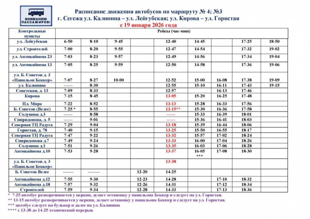 Уважаемые пассажиры! Обращаем ваше внимание на изменения в расписании городских автобусных сообщений в г.Сегеже.