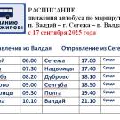 Начиная с 17 сентября, автобус по пригородному маршруту №101 "пос.Валдай - г. Сегежа - пос.Валдай" будет курсировать каждую среду по новому расписанию.