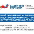 В понедельник, 10 ноября, с 14.30 до 15.30 пройдет совместный прием прокурора Сегежского округа Валерия Александровича Зейдака и социального координатора Госфонда «Защитники Отечества» Никитиной Ольги Валерьевны.