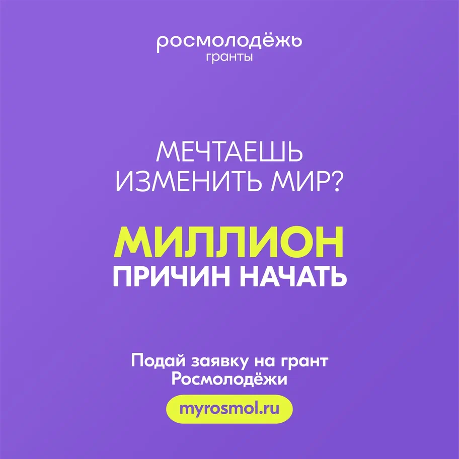 1 августа 2025 года Федеральное агентство по делам молодежи (Росмолодёжь) объявило о начале приёма заявок на Всероссийский конкурс молодежных проектов «Росмолодёжь.Гранты 2 сезон».